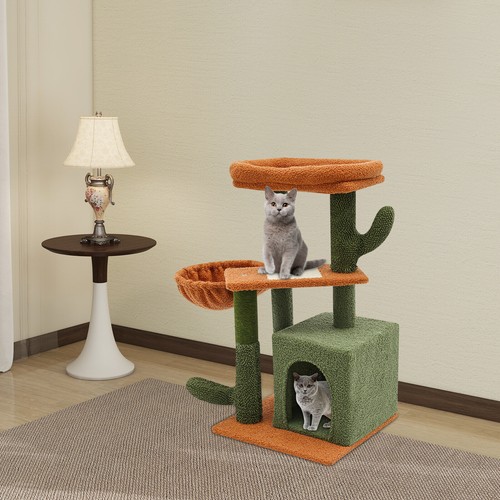 Beautiful Appearance: This green cactus-shaped cat tree is very in line with modern home style. It is not only a paradise for cats but also a beautiful decoration for homes.