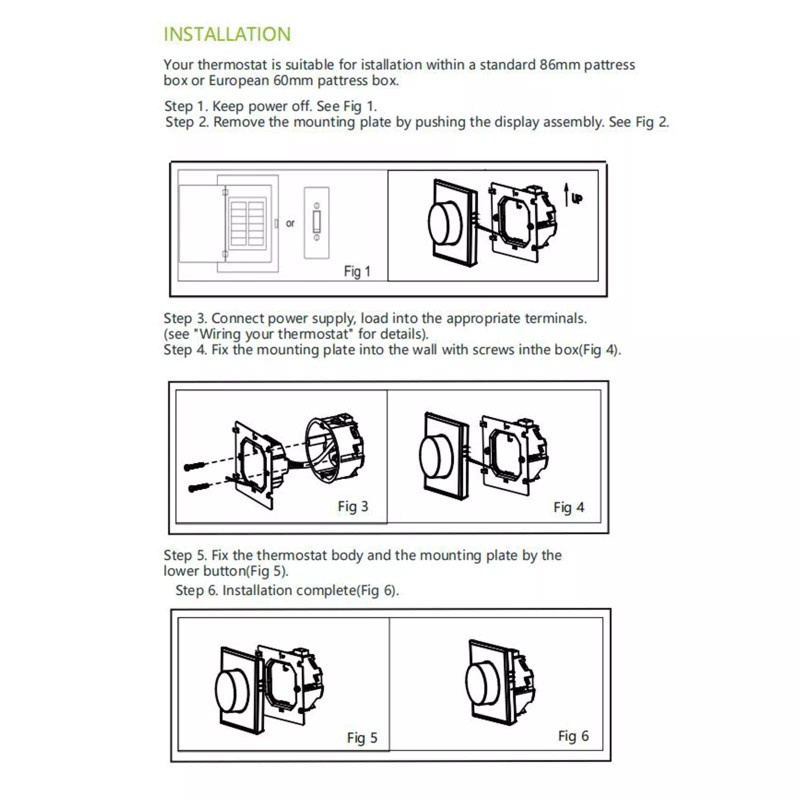 【Manual Mode & Programming Mode】The smart thermostat for home supports manual mode and programming mode. You can set week program on mobile APP easily. A separate schedule can be set for weekdays(Monday to Friday) and for weekends(Saturday or Sunday), very user-friendly.