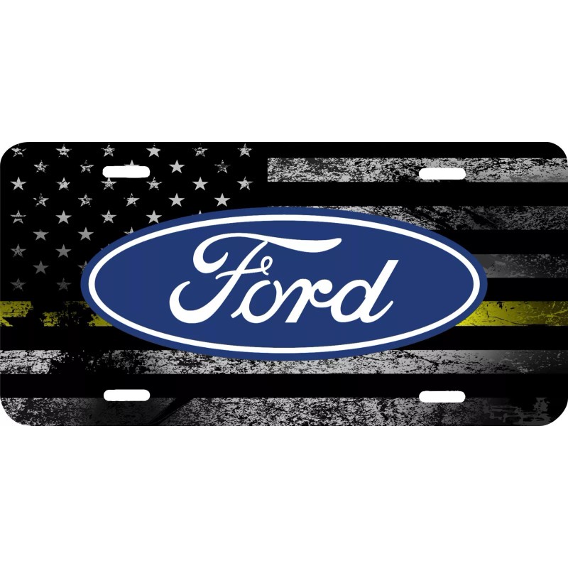 Unbranded GLOSS CLEAR COAT THIN YELLOW LINE USA DISTRESSED FLAG BLUE FORD LICENSE .040 GA