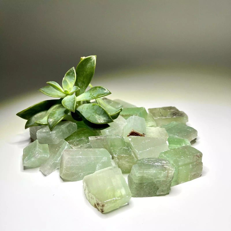 Mexican Green Calcite is a powerful crystal known for its metaphysical properties and beneficial effects on the mind, body, and spirit. This crystal is associated with the heart chakra, making it an excellent stone for promoting emotional healing, compassion, and unconditional love. It is believed to help release emotional blockages, heal past traumas, and foster forgiveness and understanding. Mexican Green Calcite is also known for its calming and soothing energy, helping to alleviate anxiety, stress, and tension. These vibrant and soothing green calcite specimens are perfect for crystal enthusiasts and collectors. Harness the metaphysical properties of this stone as it promotes emotional healing, compassion, and clarity of thought. Decorate your space with the calming energy of natural Mexican Green Calcite. Explore our selection of raw crystals and discover the power of green calcite for your crystal healing and spiritual practices.
