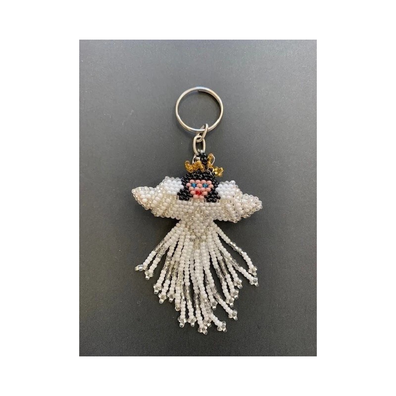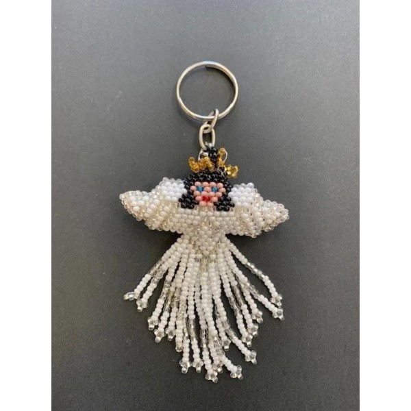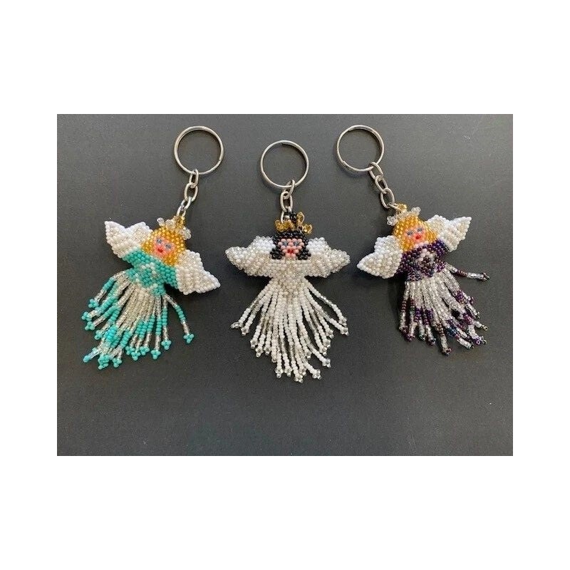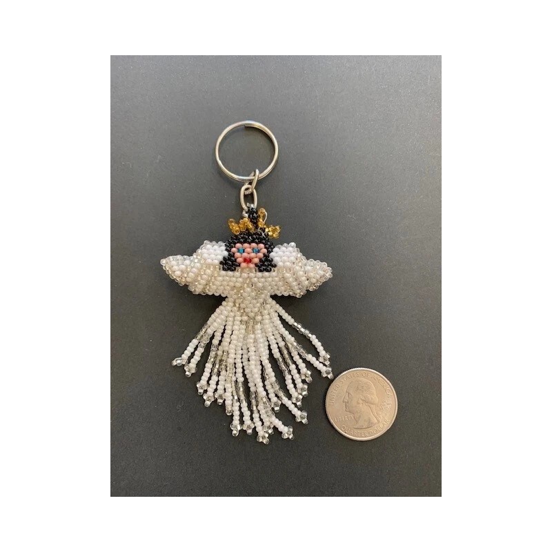 This hand-beaded key ring or chain features an angel in sparkly colors and also makes a terrific zipper pull or fob for purse or day pack.