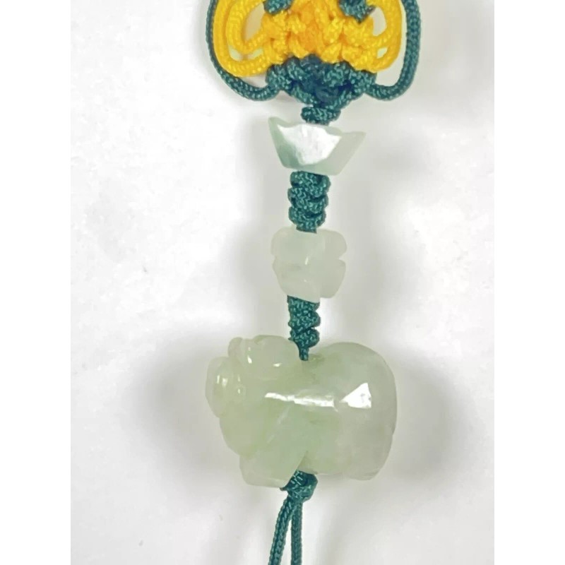 Unbranded Hand Carved Natural Jade Chinese Zodiac Boar Pendant Knotted CellPhone Car Charm