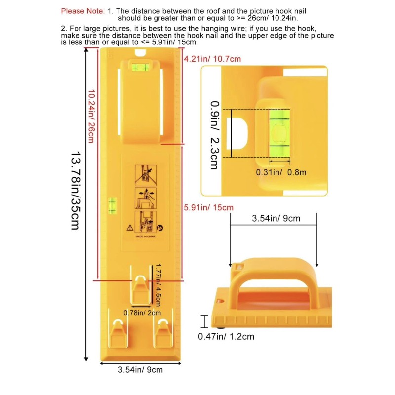 This handy level tool is perfect for hanging and leveling pictures. It comes with mounting hardware and is made of durable plastic. The tool is portable and easy to use, making it a great addition to any DIY project.