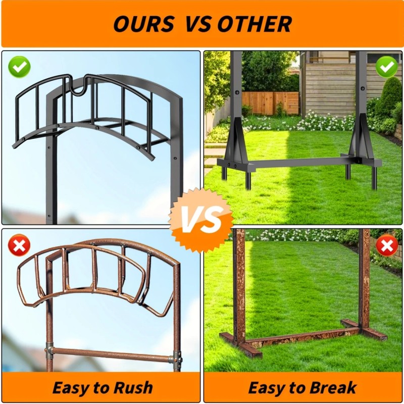【Heavy Duty & Rustproof】Made of high-strong thickened steel material, the water hose holders stand for outside are coated with a premium rustproof powder coating, and the screws are made of stainless steel to ensure rust and weather resistance.