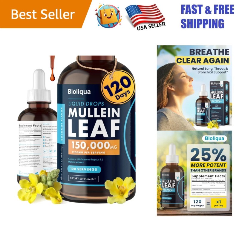 Unbranded High Strength Mullein Drops - 4fl oz Lung Cleanse Tincture, 120 Servings