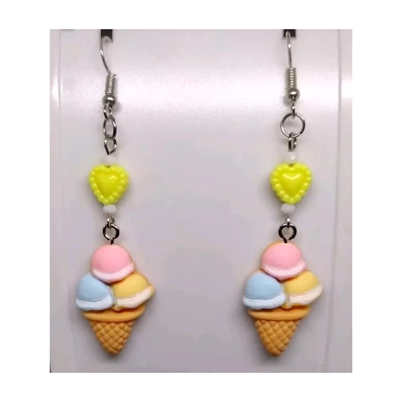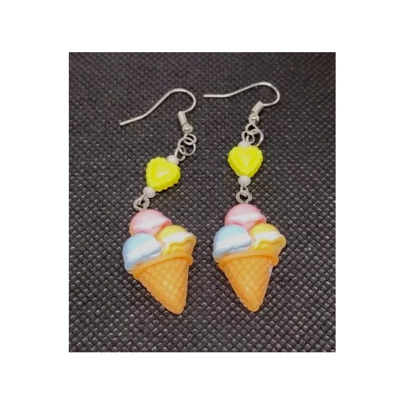 Unbranded Ice Cream Cone Dangle Earrings (Yellow Heart)