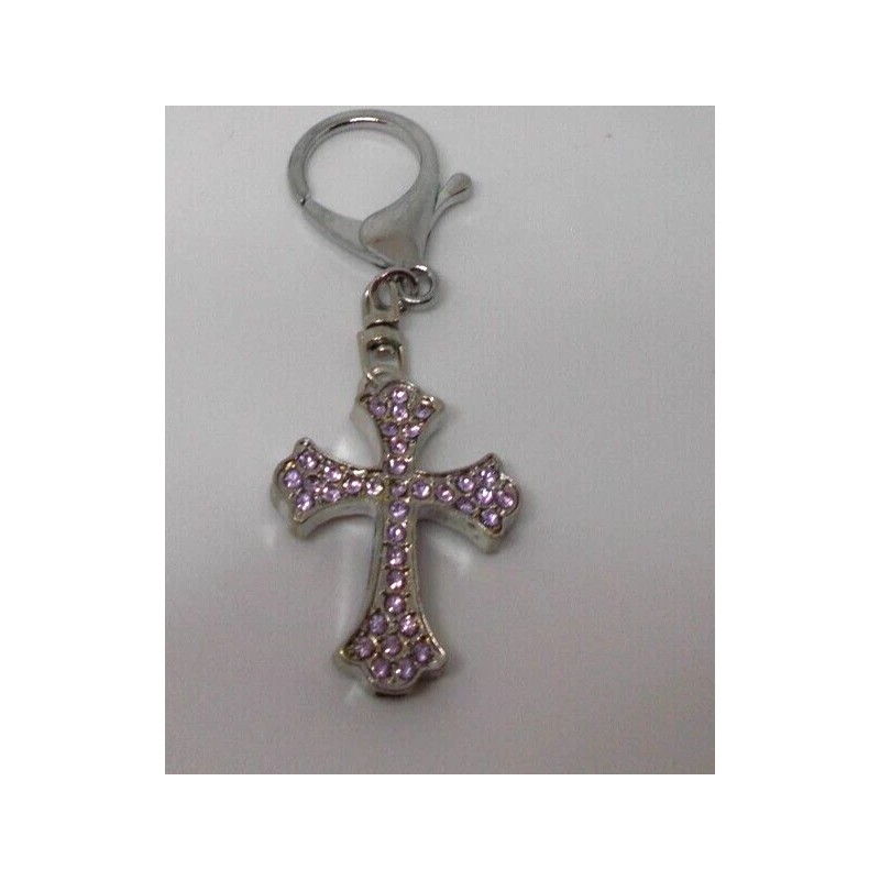 Unbranded Intricate Design Crucifix Cross with Rhinestone Pendant /key ring pink