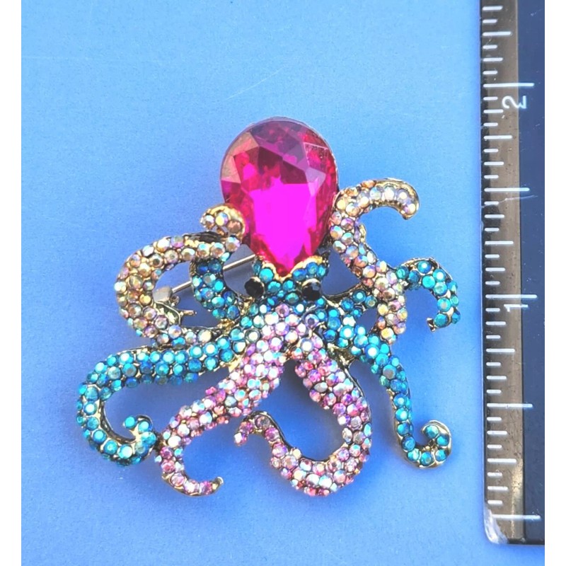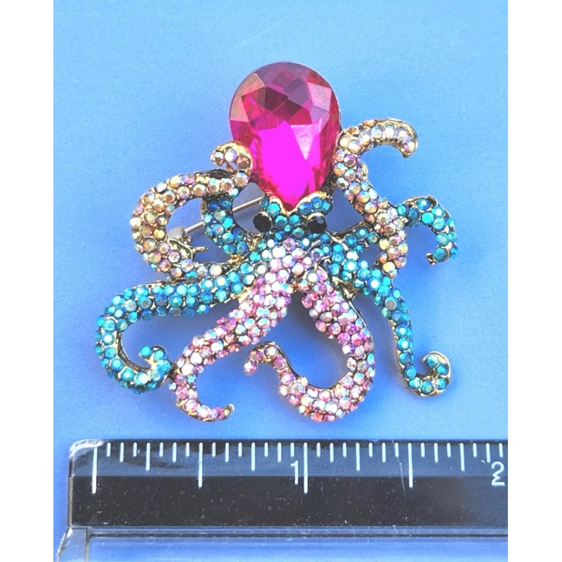 Unbranded Iridescent Rhinestone & Crystal Goldtone Octopus Brooch / Pendant