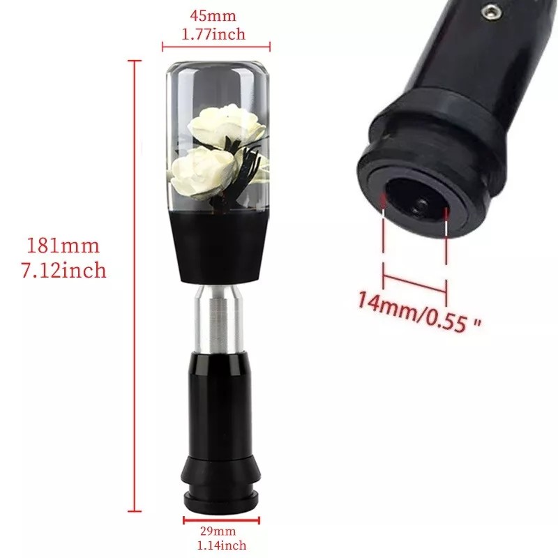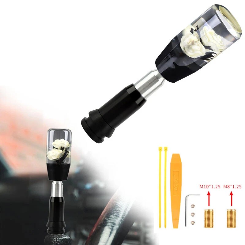JDM Clear Real Flower Automatic Gear Stick Shift Knob Lever Shifter 18cm For All Vehicle