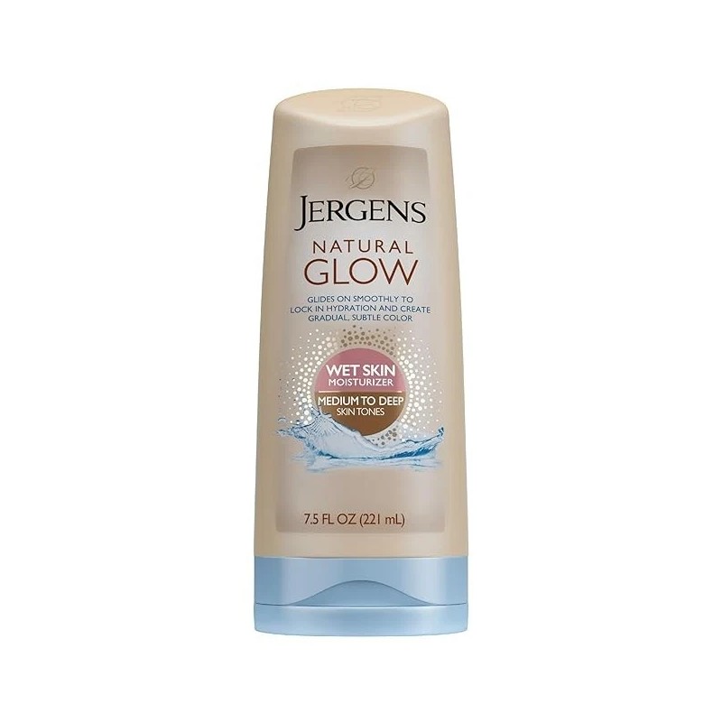 Jergens Natural Glow In Shower Lotion, Self Tanner for Medium to Deep Skin Tone, Sunless Tanning Wet Skin Lotion for Gradual, Flawless Color, 7.5 Ounce (Packaging May Vary)