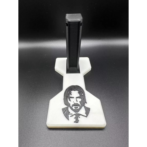 Showcase your prized pistol with this sleek and sturdy John Wick Double Stack 1911/2011 Pistol Display Stand. Designed to hold one gun, this stand is perfect for pistol enthusiasts who want to display their firearm in a stylish and functional way. The stand is made of durable polymer fillament and is portable, making it easy to attach to your gun and take with you on the go. The stand is black in color and is suitable for pistols of the 1911/2011 type. Made in the United States, it is a high-quality accessory for any gun storage needs. Whether you're a collector or a gun owner, this display stand is a great way to show off your love for your firearm.