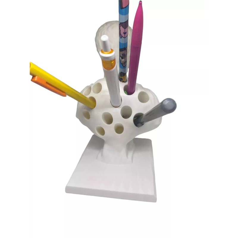 3d printed WHITE This Julius Caesar Pen/Pencil Holder Desktop Organizer is made of plastic and has a design inspired by the historical figure Julius Caesar. It serves as a functional and decorative organizer for pens and pencils on a desktop. It is not a custom bundle and has not been modified.