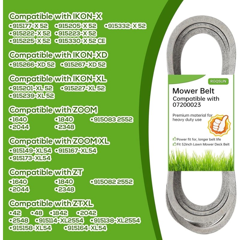 Unit Quantity: 1Compatible Brand: Lawn Mower Deck BeltMaterial: Aramid,NeopreneCompatible Model: For Ariens Zoom,For Ariens Zoom 1640,For Ariens Zoom 1840,For Ariens Zoom 2044,For Ariens Zoom 2348,For Ariens Zoom 2552,For Ariens Zoom XL 54,For Ariens IKON-X 52,For Ariens IKON-XD 52,For Ariens IKON-XL 52,For Gravely ZT 1640,For Gravely ZT 1840,For Gravely ZT 2044,For Gravely ZT 2348,For Gravely ZT 2552,For Gravely ZTXL 42,For Gravely ZTXL 48,For Gravely ZTXL 1842,For Gravely ZTXL 2042,For Gravely ZTXL 2548,For Gravely ZTXL 2554