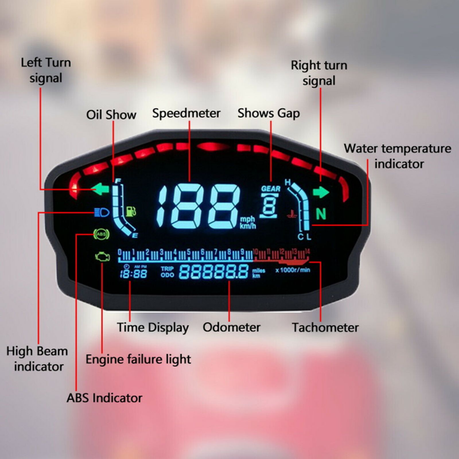 LCD Digital Universal Motorcycle Odometer Speedometer Tachometer KM/H Gauge