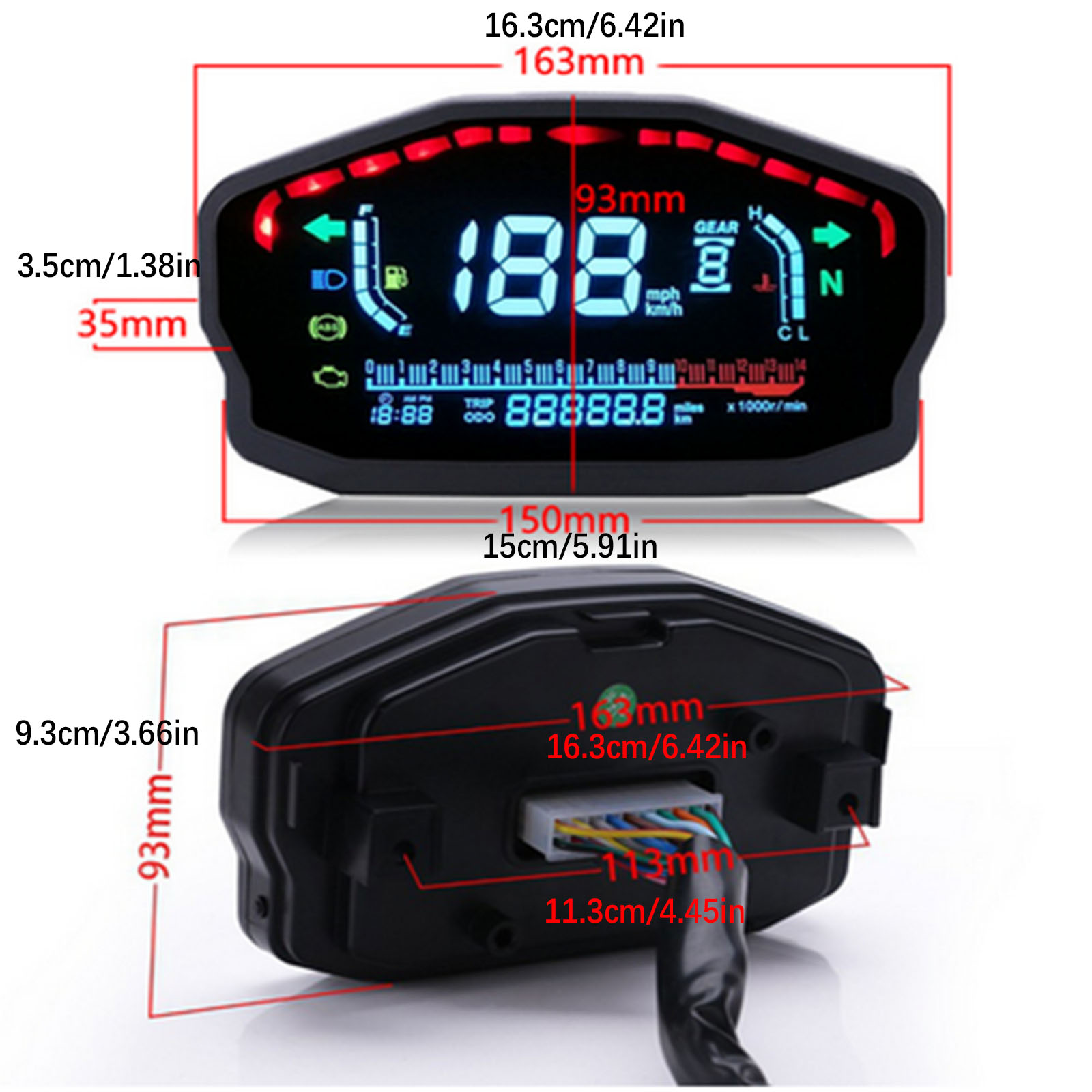 Unbranded LCD Digital Universal Motorcycle Odometer Speedometer Tachometer KM/H Gauge
