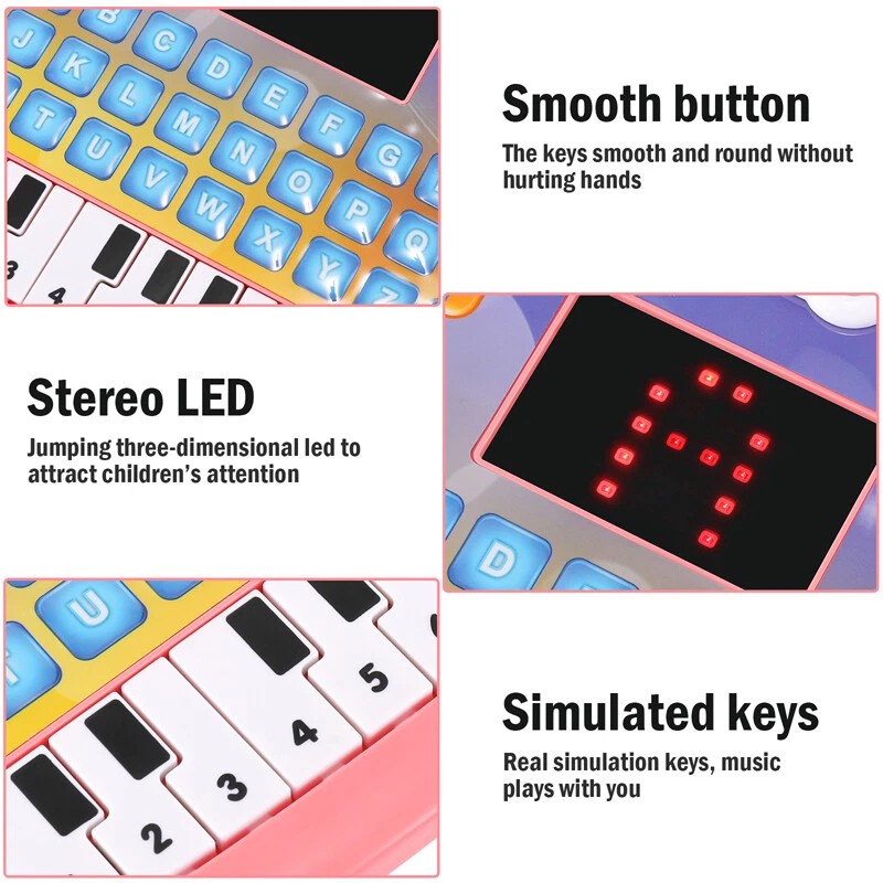 -- Beautiful Music: This learning machine has a variety of melodies, songs and interesting animal sounds, which can attract children's attention, at the same time, it has simulated piano keys, and children can play a variety of wonderful melodies.