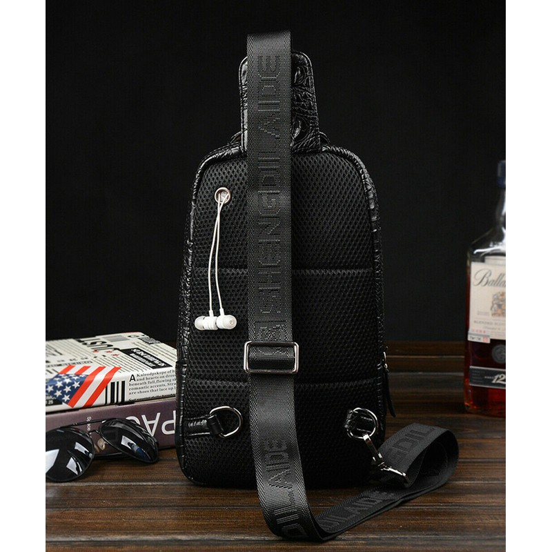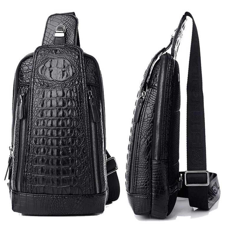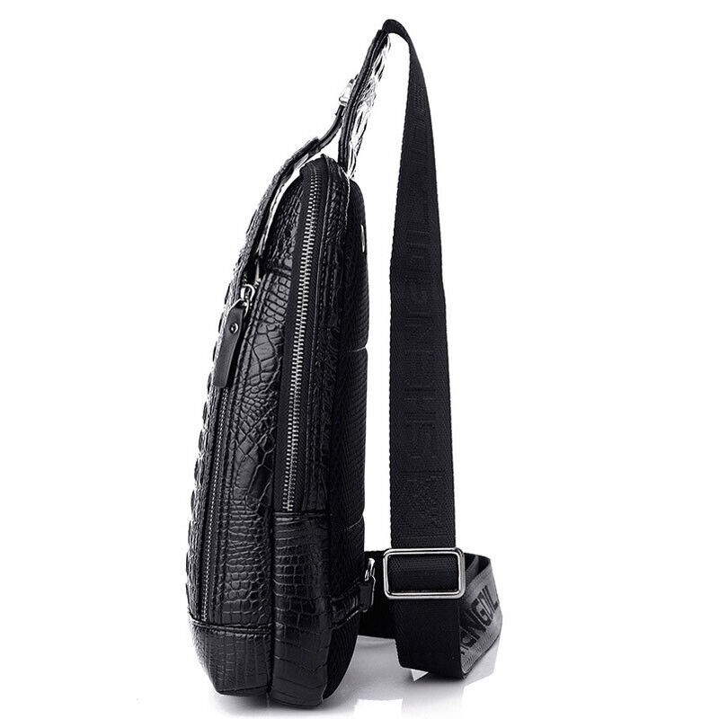 Unbranded Leather Sling Daypack Backpack for Mens Crocodile Pattern Luxury Crossbody bag