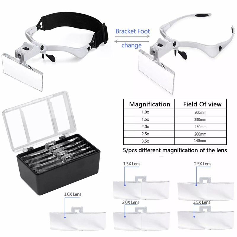 Unbranded LED Jewelers Head Headband Magnifier Illuminated Visor Magnifying Glasses Loupe