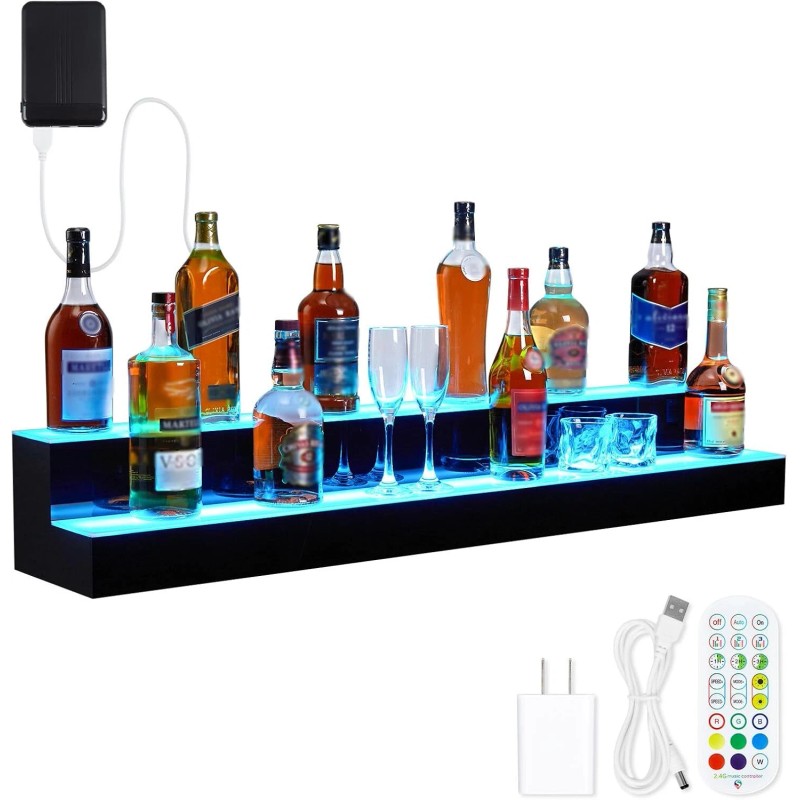 Unbranded LED Liquor Bottle Display Shelf 2 Tier 48" Bar Display Shelf Acrylic Wine Rack