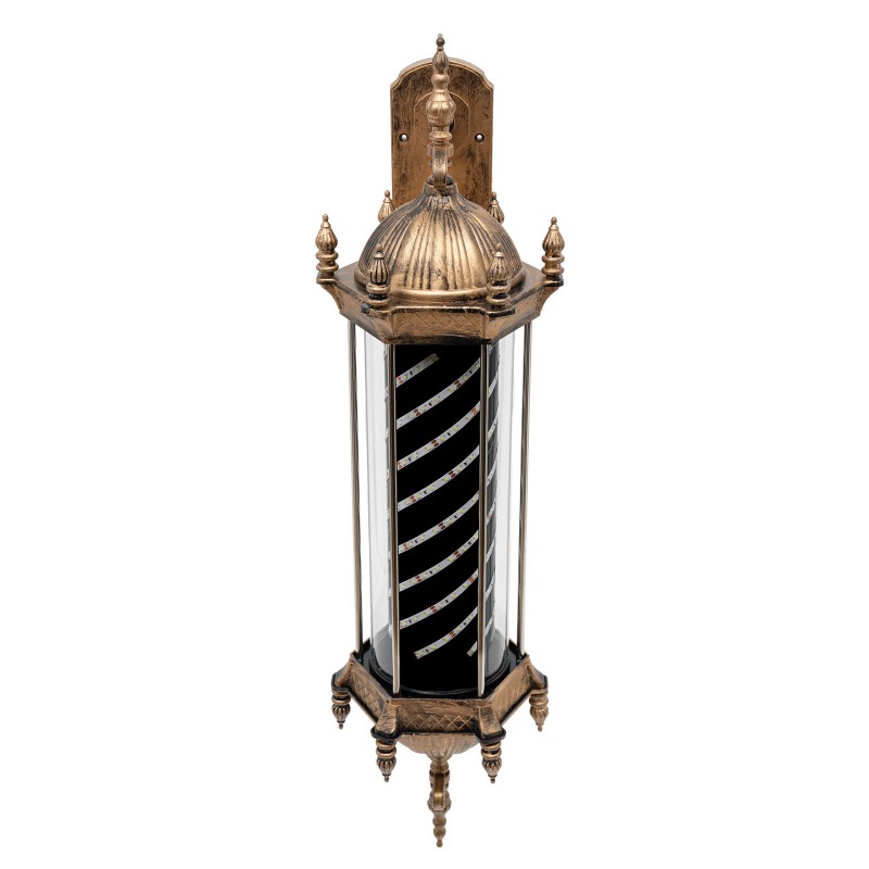 Vintage Style: Crafted to mimic the aesthetic of traditional barber shop signs, our vintage-style barber rotating light features antique bronze and classic European patterns and elements that add a touch of nostalgia to the space.
