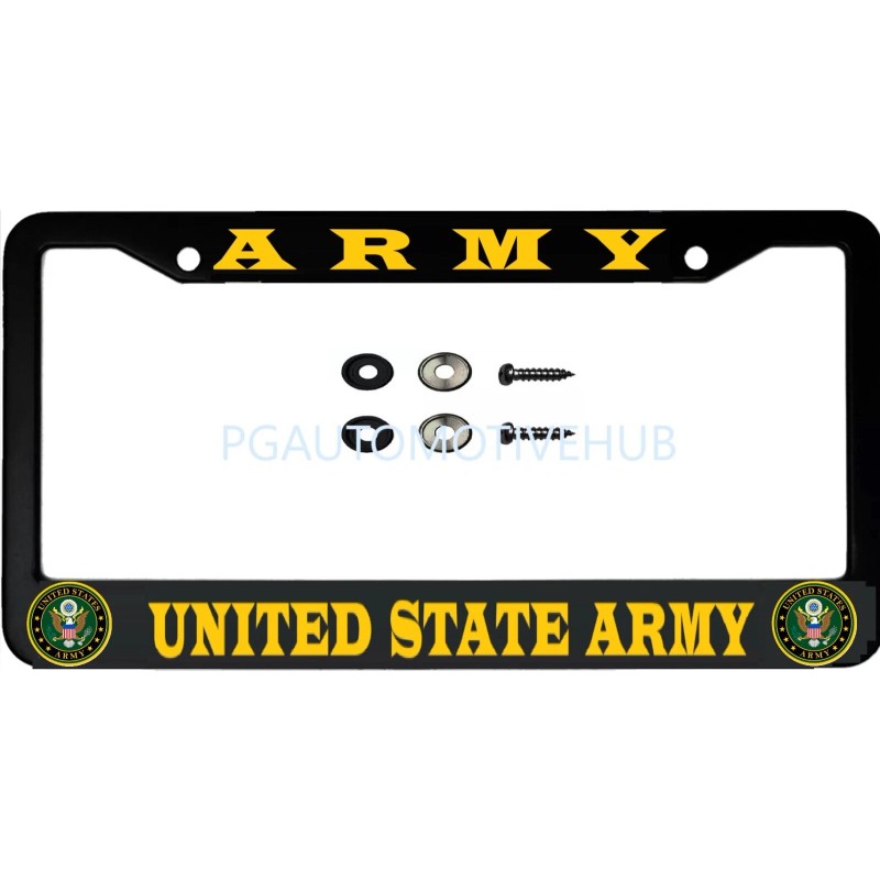 Unbranded License Plate Frame Black Stainless Steel Vinyl Lettering for United State Army1