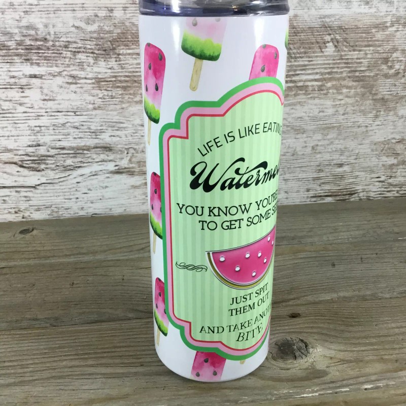 Unbranded Life is Like Eating a Watermelon 20 oz Skinny Tumbler with Lid and Straw
