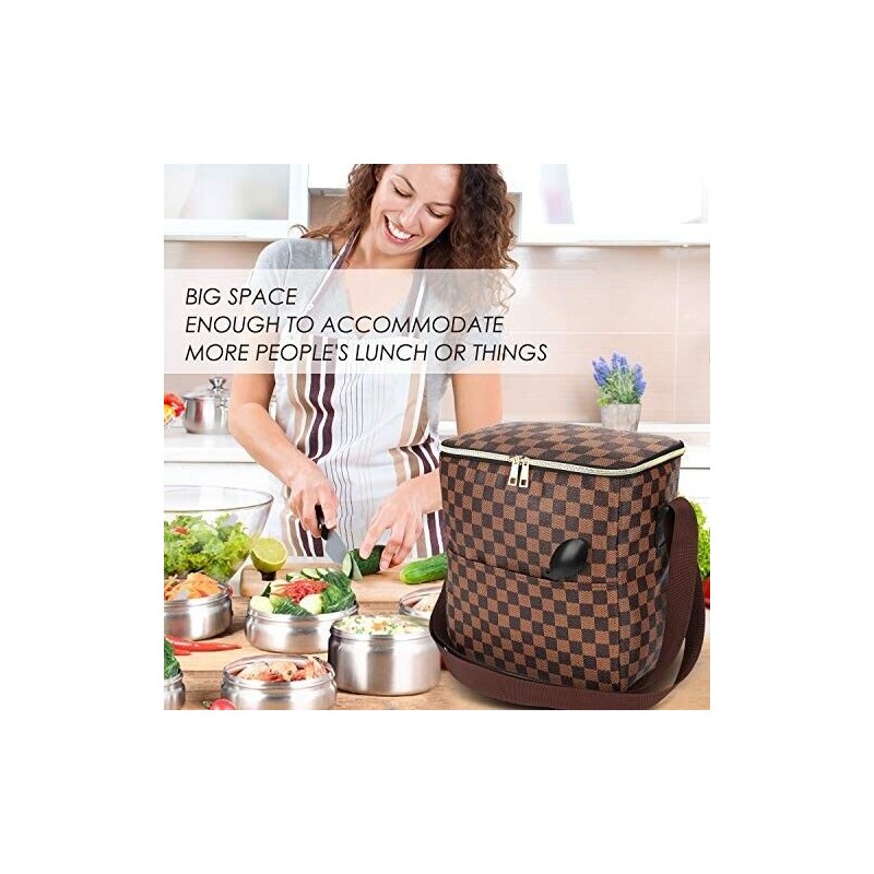 - 【Portable & Fashion】The fashion insulated lunch box is extremely lightweight and comes with adjustable nylon shoulder strap,ensure this lunch box bag use safe in weekend or work.The shoulder strap can be adjusted to a comfortable length,make it convenient for long time carrying. The Checked Pattern is simple and elegant, which are totally visually appealing styles.Fashion cooler bag not only as the lunch bag, it can use as a fashion shoulder bag,bento bag, sundry bag, shopping bag,picnic bag.