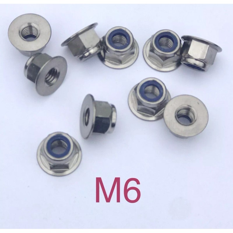 Unbranded M6 Titanium Flange Hex Nylon Lock Nut (Lighter than Stainless Steel) Qty.10
