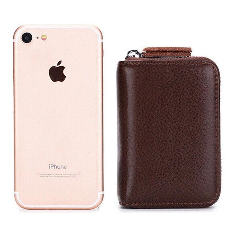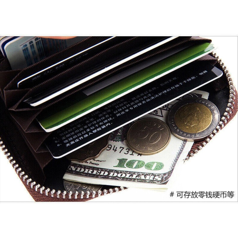 Unbranded Men's Small Genuine Leather Wallet RFID Blocking Credit Card Zipper Holder Purse