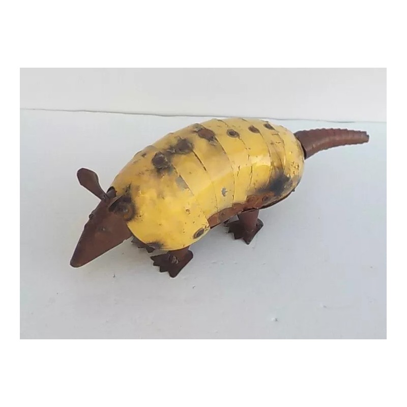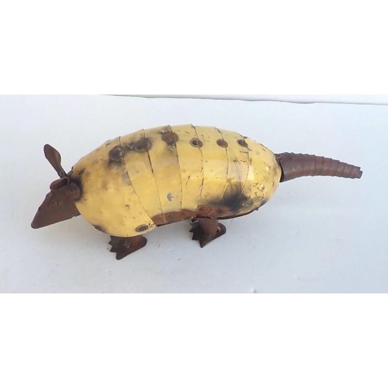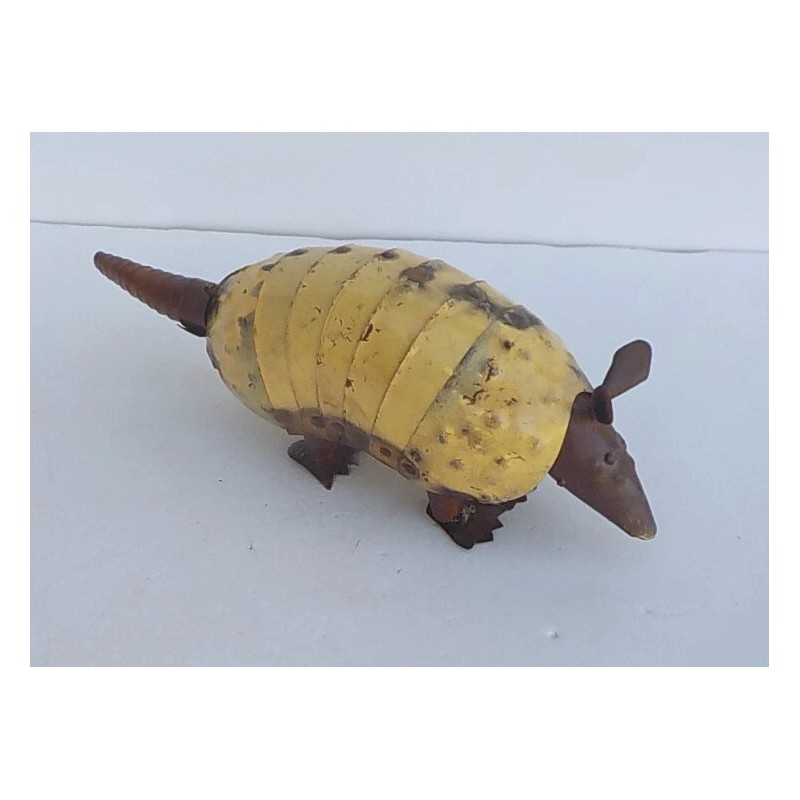 Made in Mexico from recycled sheet metal signs, this yard art armadillo sculpture measures 10 1/2" long (head to tail) x 3" wide x 4" tall. This item is handmade and it is meant to look rustic. There will be exposed welds and some scratches in the paint and there may be some spots of light surface rust on this item.