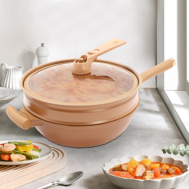 The art of cooking is all about time and heat. Our micro pressure cooker is made of high-quality aluminum alloy, creating a new kitchen experience that is efficient and convenient. It adopts micro-pressure technology, which greatly shortens the cooking time and preserves the original flavor of the ingredients. Simple operation allows you to enjoy the fun of cooking. Choosing it is choosing a time-saving, labor-saving, heart-saving healthy lifestyle!