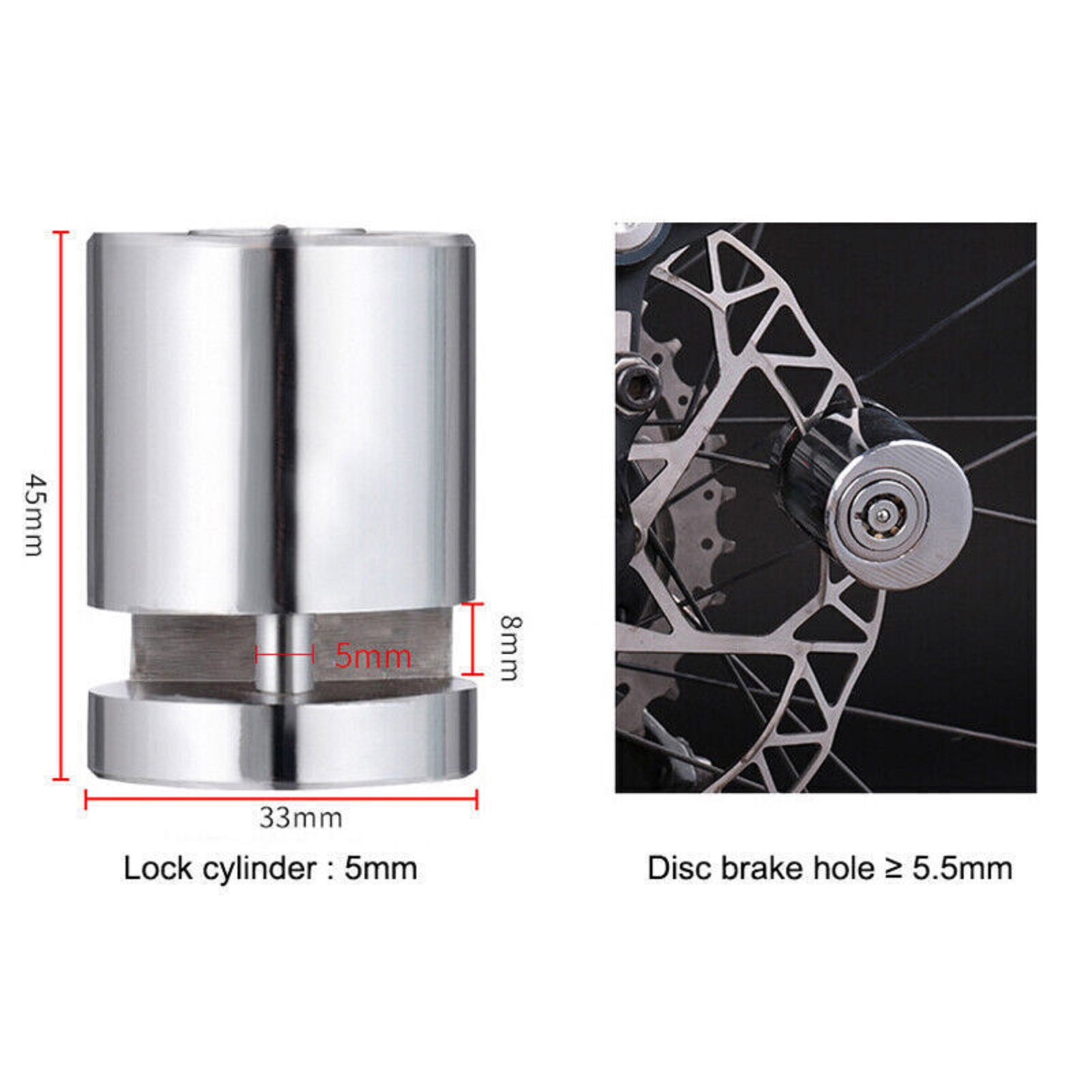 Suitable for motorcycle and bicycle that disc brake lock cylinder 5mm, disc brake hole diameter is greater than 5.5mm.