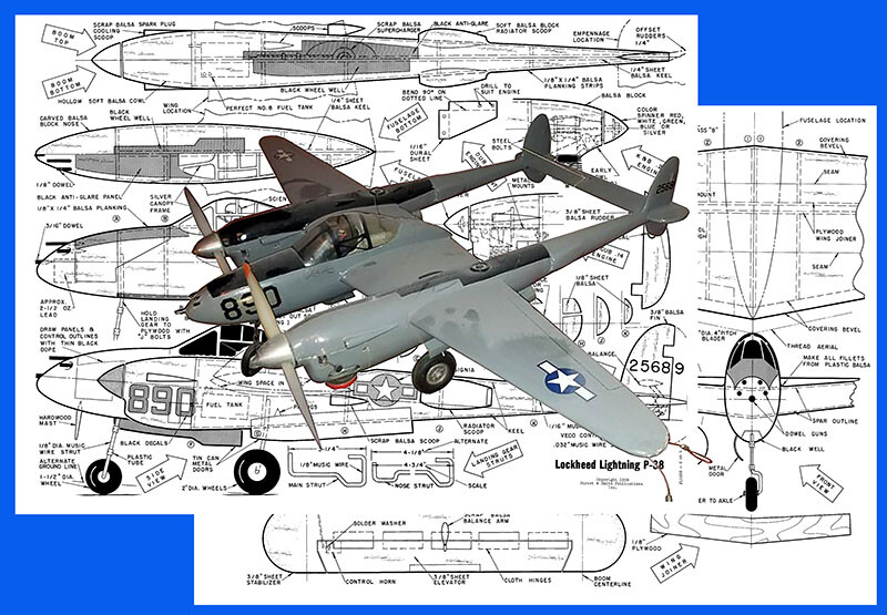 Unbranded Model Airplane Plans (UC): Lockheed P-38 40" Scale for 2x .14-.23s (Musciano)