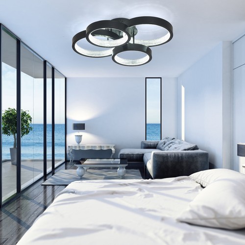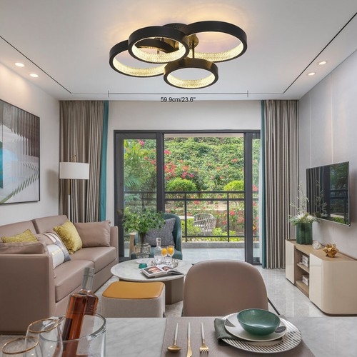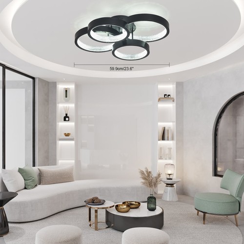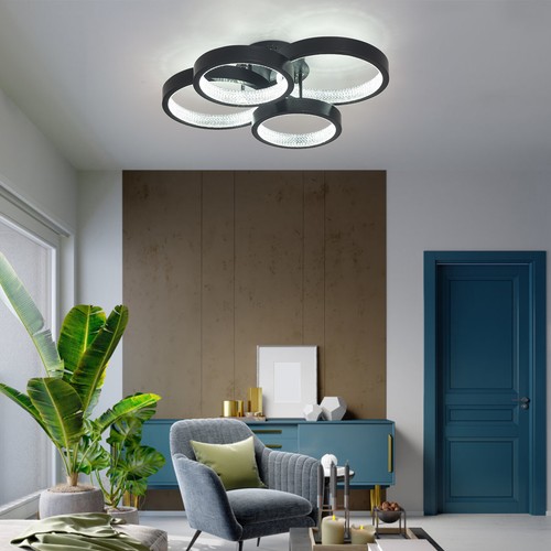 Unbranded Modern Dimmable Chandelier LED Acrylic Ceiling Light 4 Rings Flush ...