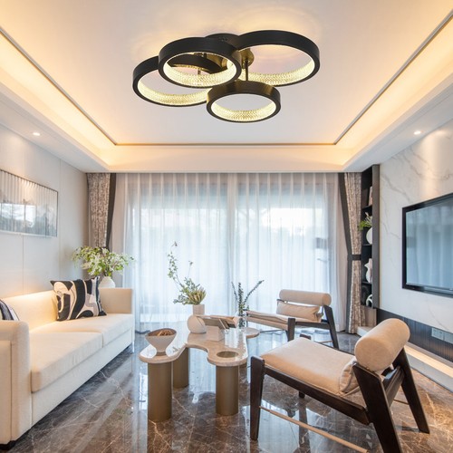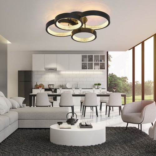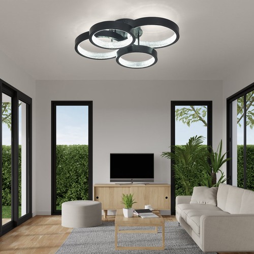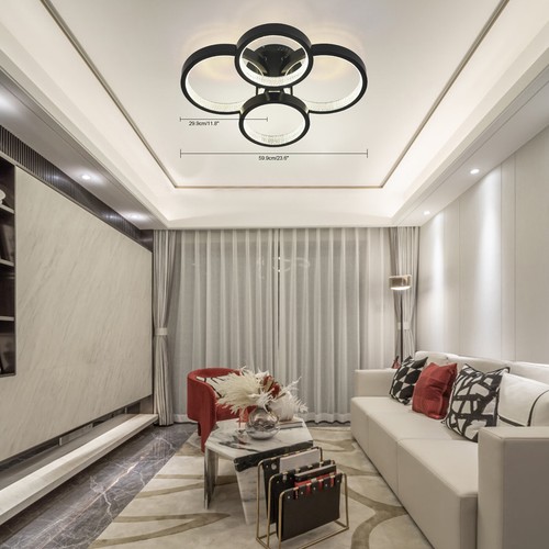 Modern Dimmable Chandelier LED Acrylic Ceiling Light 4 Rings Flush Mount Lamp US