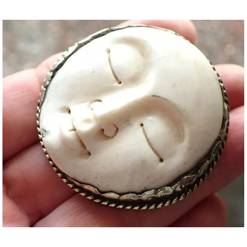 Moon Face Ring in Cattle Bone and Tibetan Silver adjustable