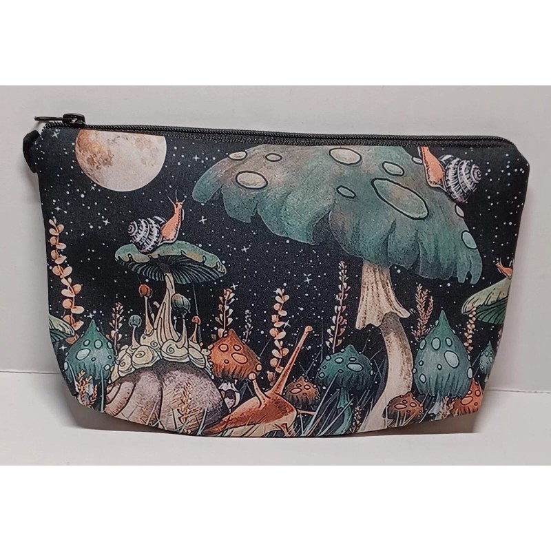 Unbranded Moon, Green Mushrooms & Snails Patterned Cosmetic Bag. 8"×5". New