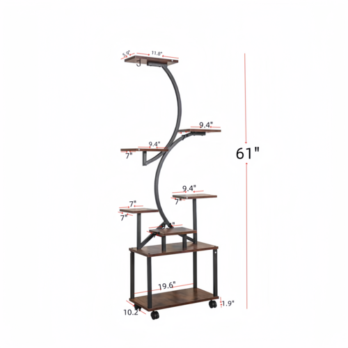 - 8 Tiered Indoor Plant Stand: 62" Tall plant tand offers a tall structure that maximizes vertical space, perfect for small areas. 8-Tiers and 1 hook for hanging potted plants design to hold multiple plants, providing ample room for different types and sizes of plants. The overall shape is modern and elegant, this S-shaped plant rack adds a stylish flair to any home decor.