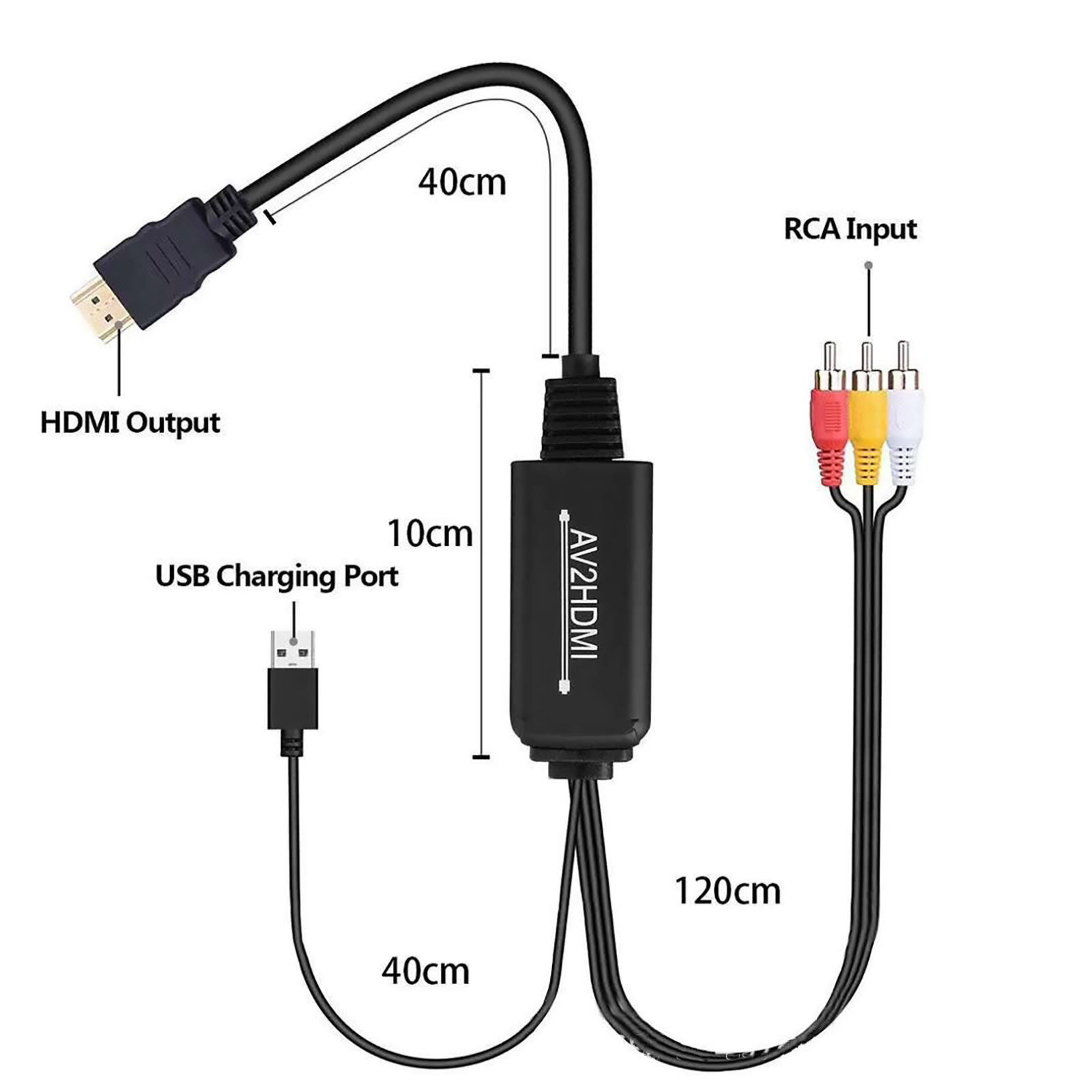 Composite Audio Video CVBS To HDMI Converter 3 RCA To HDMI Converter AV To HDMI Converter Cable Support 1080P