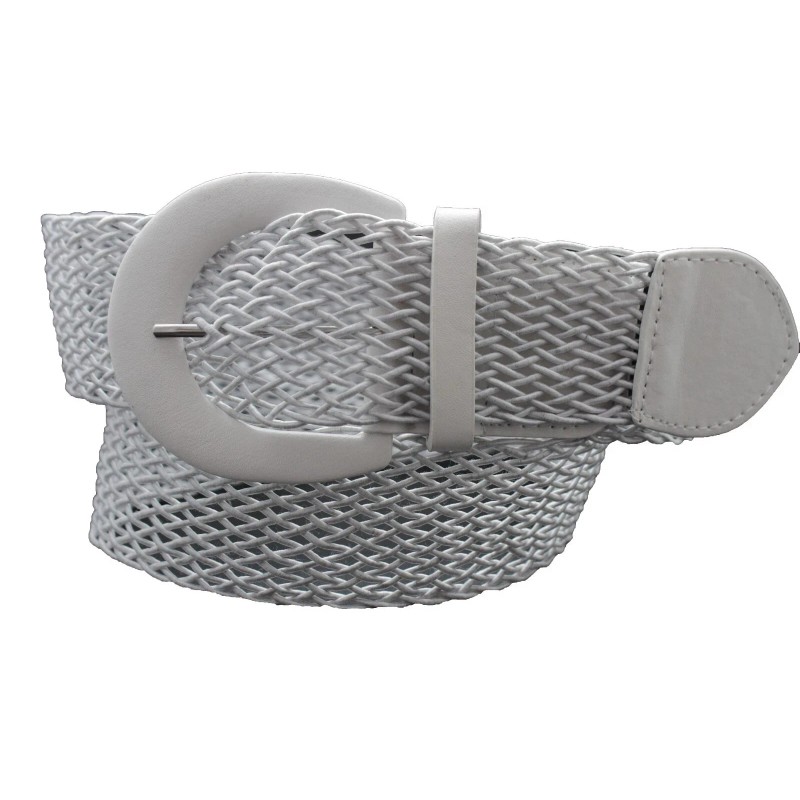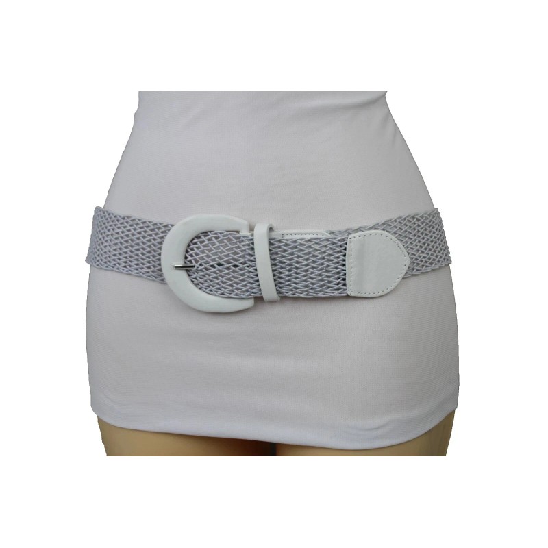 Unbranded New Women White Faux Leather Braided Net Mesh Fabric Business Casual Belt S M