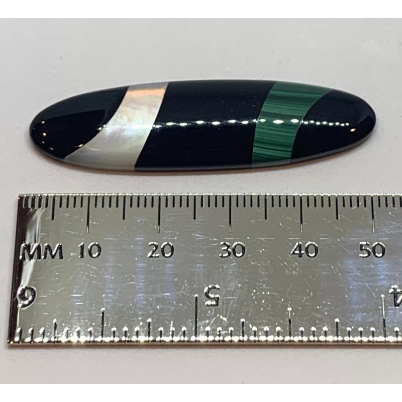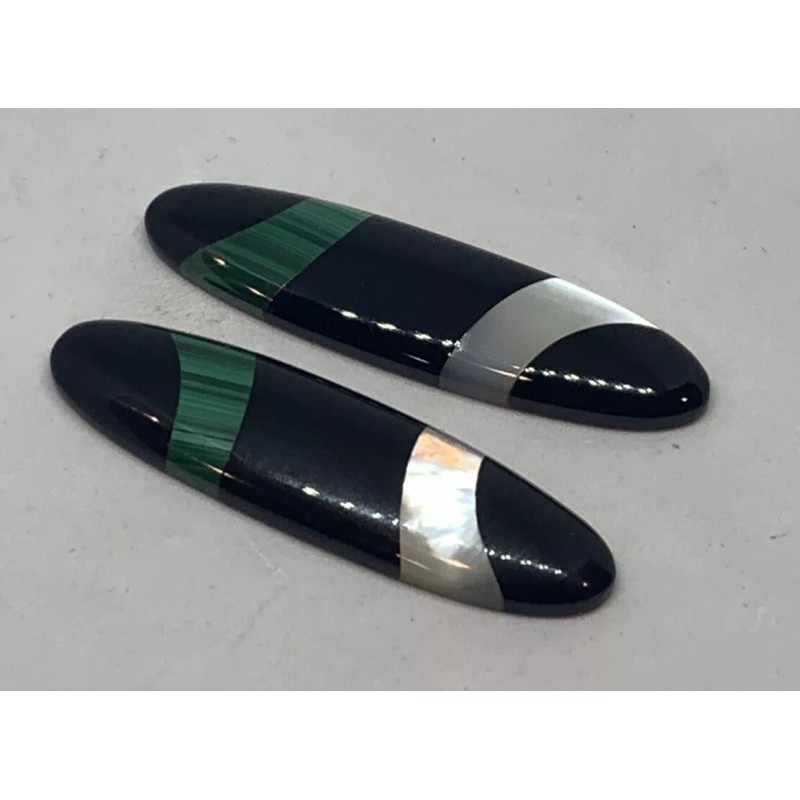 Unbranded NOS Set of 2 Genuine Malachite Onyx Mother Of Pearl Oval Polished Stones 54 cts