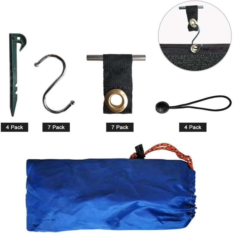 - Size and color - 8 ft. x 8 ft. black mesh side shade panel, bungee balls, spiral stakes and hooks are included