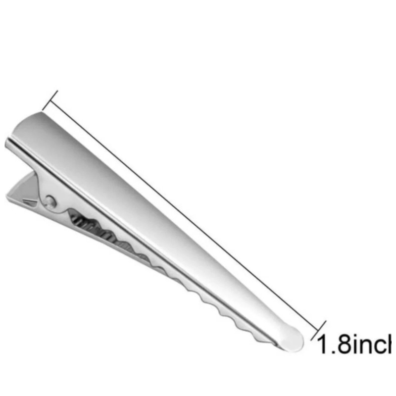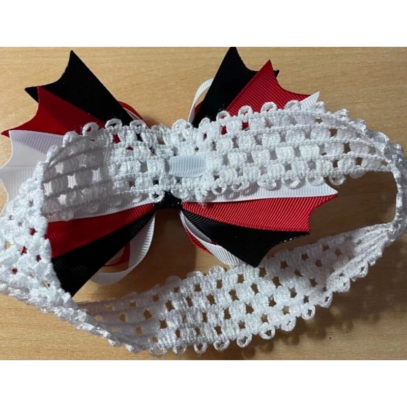 Made on an alligator clip. Measures 5 inches across the back ribbons.