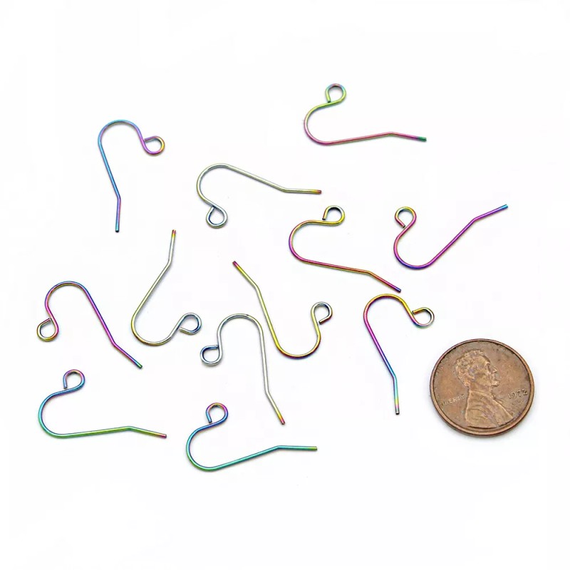 Unbranded Rainbow Electroplated Stainless Steel Earring Hooks - 22mm - 10 Pieces - FD999