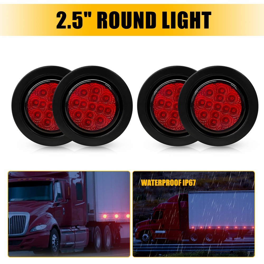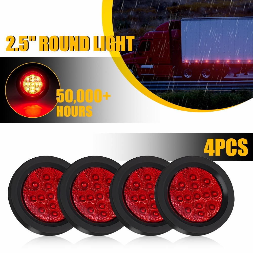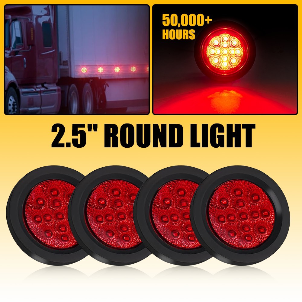 Packaging Include: 4 x 2.5" Round 13 LED Clearance Side Marker Light 4 x 2.5" Round Black Grommet 4 x 2-Pin 90° Plugs connector