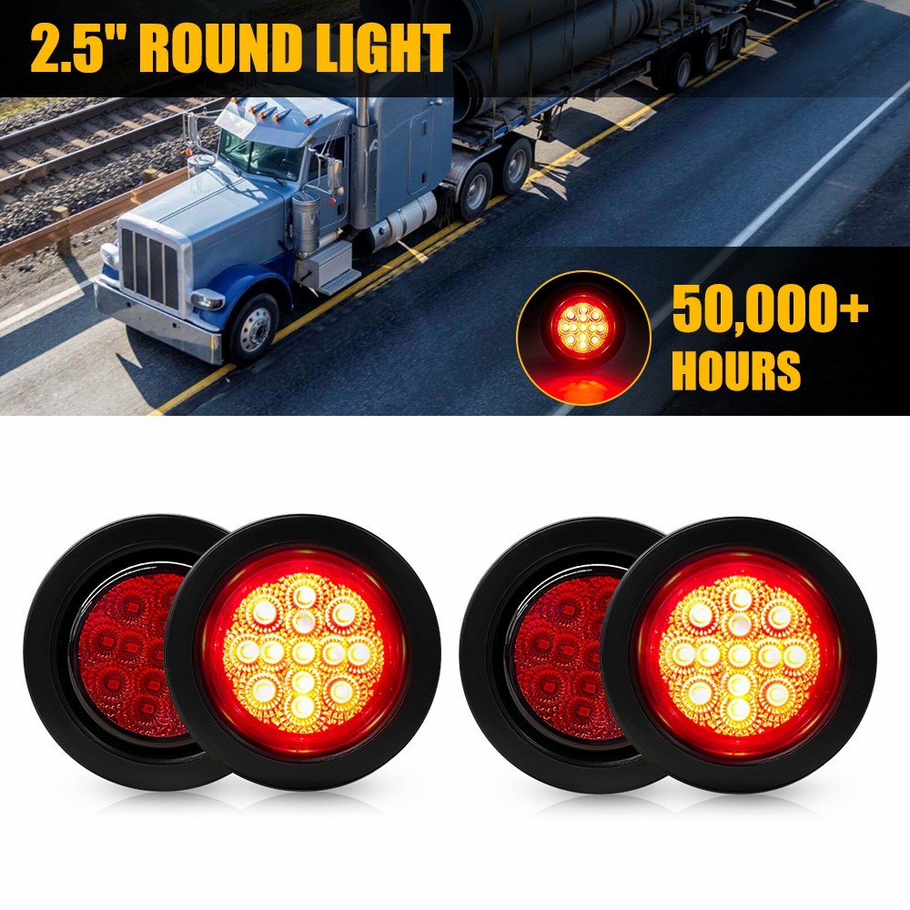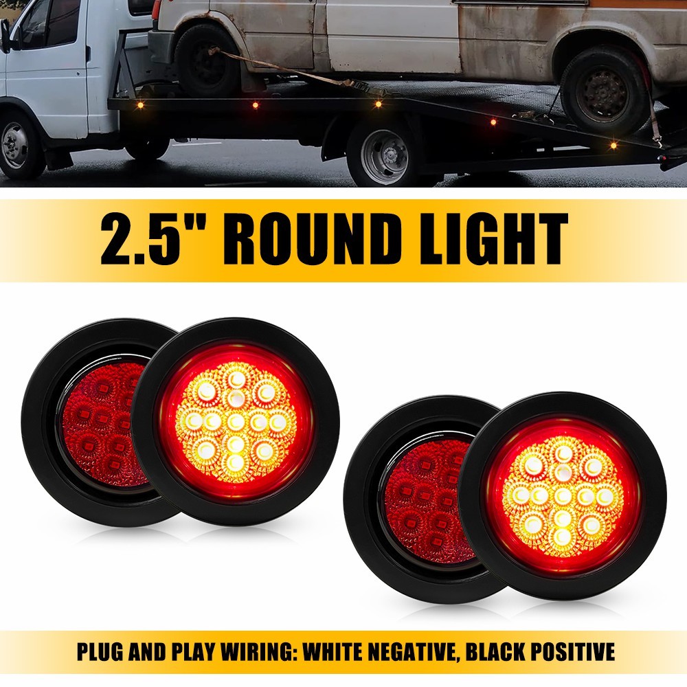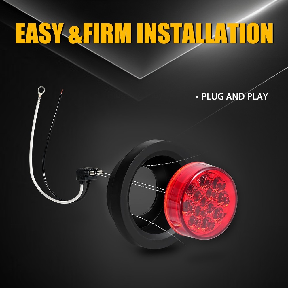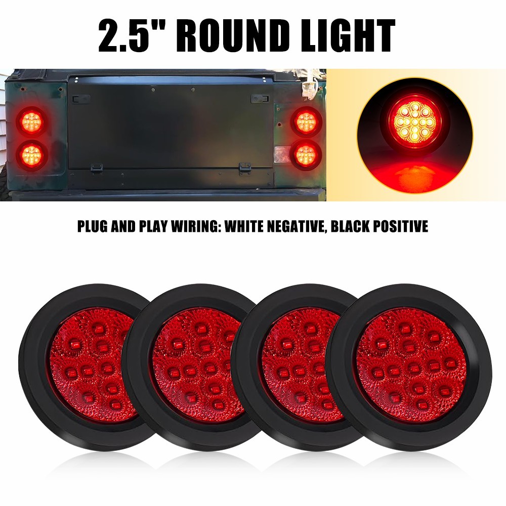 Packaging Include: 4 x 2.5" Round 13 LED Clearance Side Marker Light 4 x 2.5" Round Black Grommet 4 x 2-Pin 90° Plugs connector