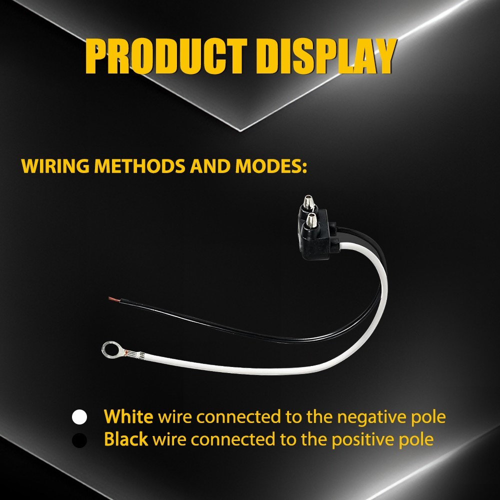 Specifications: Product Material: ABS+PC Lens Color: Red Light Color: Red Wiring Mode: White wire: Negative Black wire: Positive Voltage: 12-24V DC Connector Type: Pigtail Mounting Type: Flush-Mount Waterproof Grade: IP67 Lifespan: 50,000h+