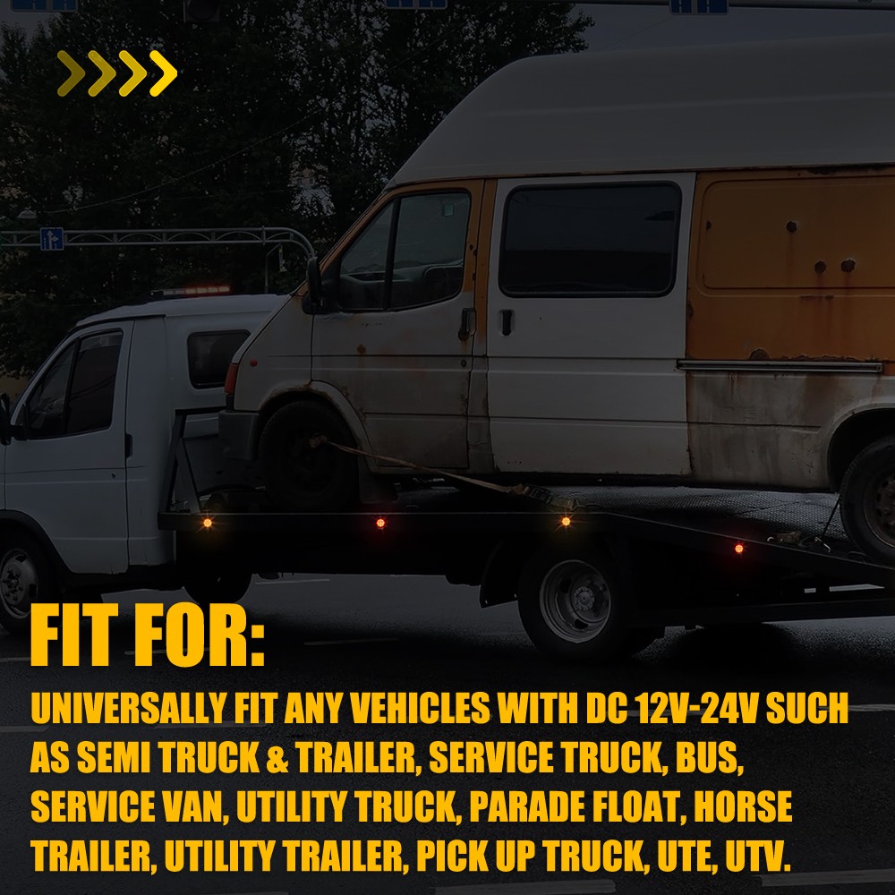 Fit for: Universally fit any vehicles with DC 12V-24V Such as Semi Truck & Trailer, Service Truck, Bus, Service Van, Utility Truck, Parade Float, Horse Trailer, Utility Trailer, Pick Up Truck, UTE, UTV.