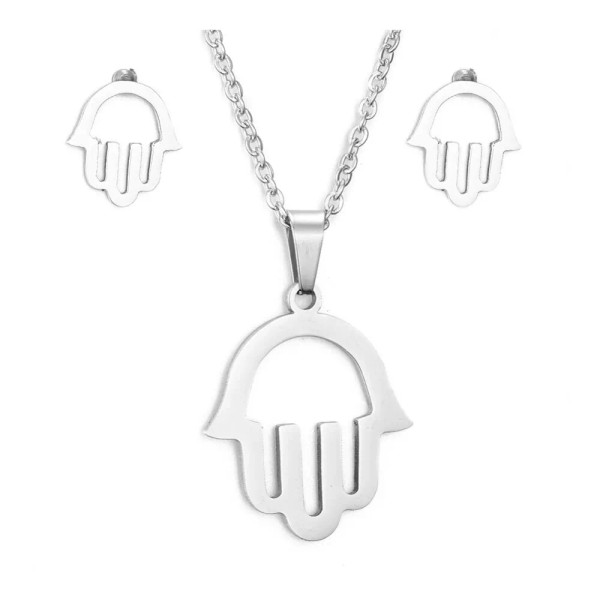 Unbranded Religion Stainless Steel Set Pendant Necklace Earrings Hamsa Silver 17" A456