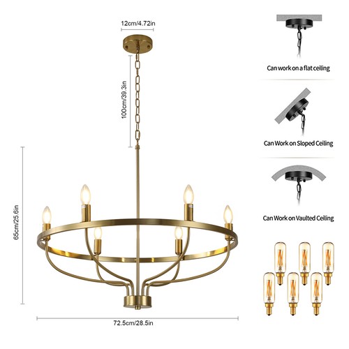 It is suitable for a kitchen island, dining room, entryway, stairway, cafe, club, bar, restaurant, and library of 107.6-215ft². It is compatible with a variety of Edison, CFL, or LED light bulbs, and is compatible with different types of ceiling designs, such as arched ceilings, sloping ceilings, and flat ceilings.